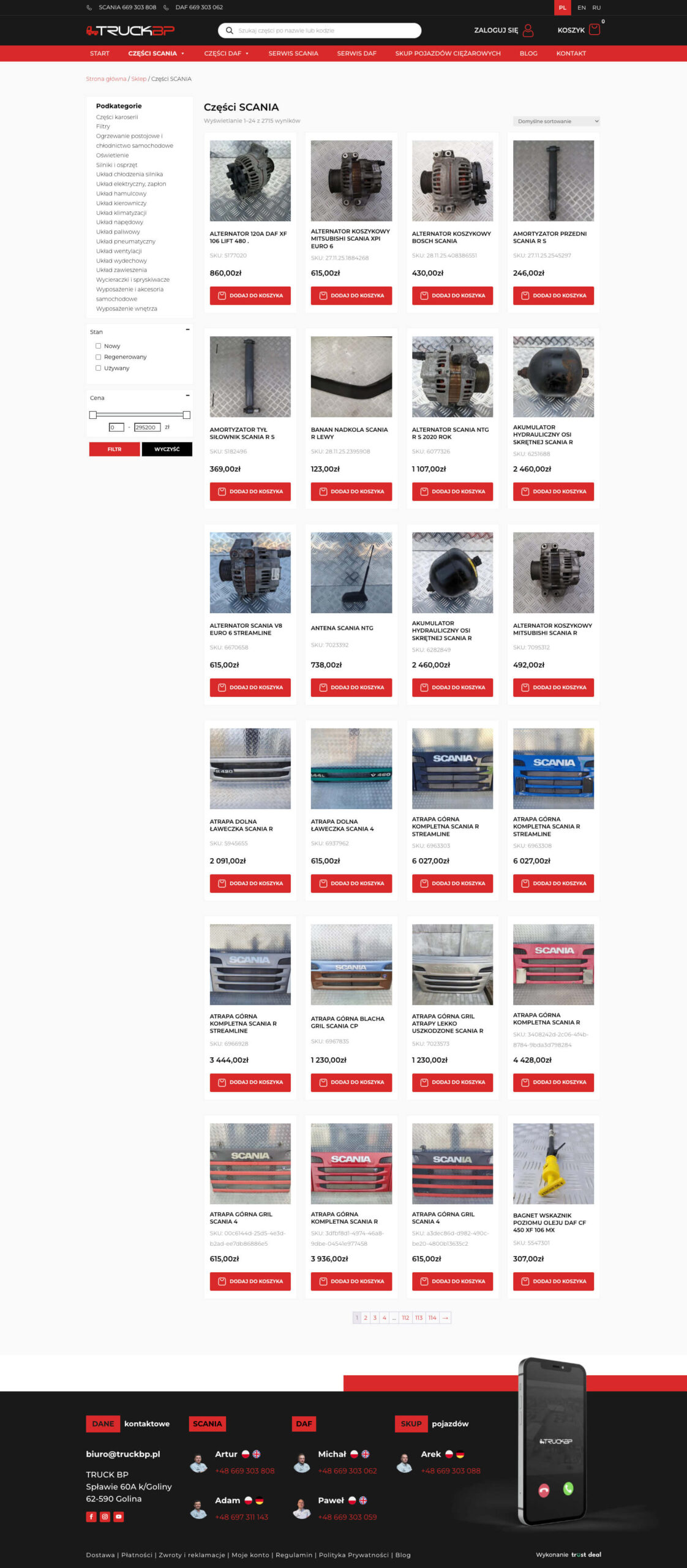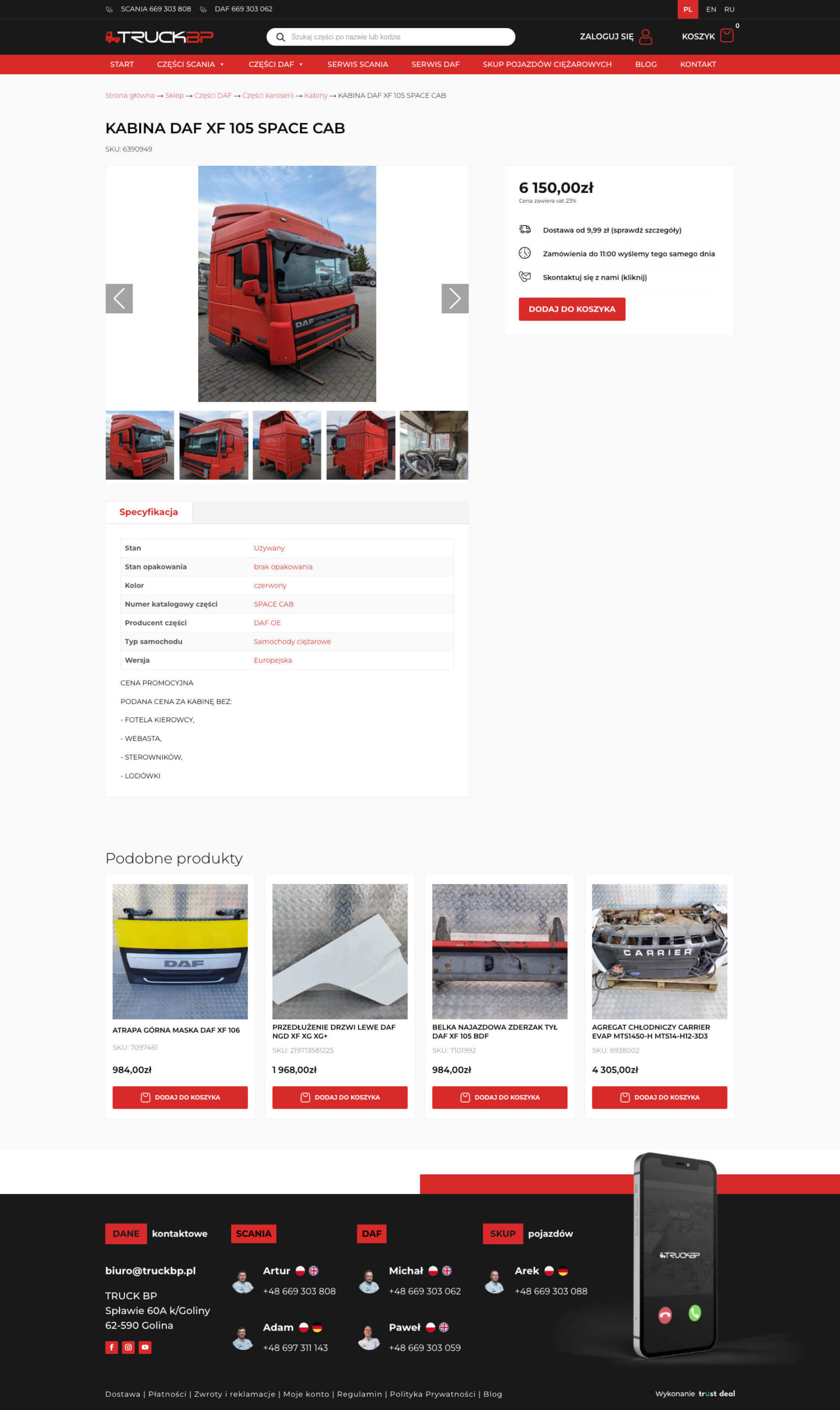 - realne wsparcie sprzedaży części do SCANIA i DAF.
